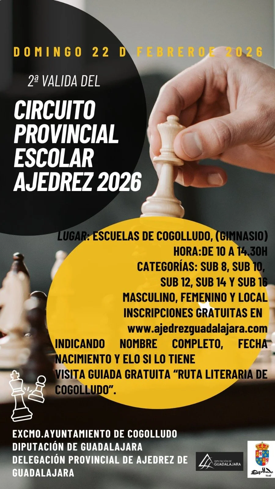 El 22 de Febrero vuelve el circuito provincial de ajedrez escolar con un torneo en Cogolludo.